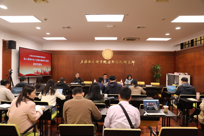2025年4月25日上午,國(guó)際問(wèn)題研究所召開(kāi)“深入貫徹中央八項(xiàng)規(guī)定精神學(xué)習(xí)教育”專(zhuān)題讀書(shū)交流會(huì),會(huì)議由國(guó)際所黨總支書(shū)記、所長(zhǎng)王健主持。