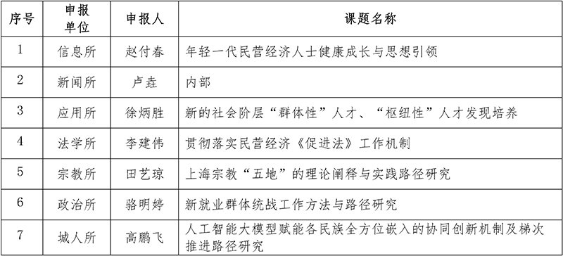 2025年度市委統(tǒng)戰(zhàn)部立項課題結(jié)果已公布,我院共中標(biāo)7項。具體名單如下: