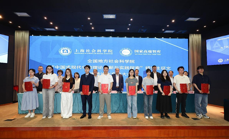 下午,全國地方社會科學(xué)院“中國式現(xiàn)代化的理論創(chuàng)新與實(shí)踐探索”研究生征文優(yōu)秀論文交流大會在上海社科國際創(chuàng)新基地多功能廳順利召開。會議由上海社會科學(xué)院研究生院李偉院長主持。上海社會科學(xué)院研究生院黨委書記軒傳樹介紹本次征文活動開展情況,黨委副書記侯偉東宣讀獲獎學(xué)生名單,四川省社科院研究生學(xué)院柴劍峰院長、黑龍江省社科院研究生學(xué)院徐嘉南院長、廣東省社科院研究生部吳大磊副主任(主持工作)、湖北省社科院研究生處謝芳副處長(臨時(shí)牽頭人)和高慧副處長、上海社科院研究生院邸俊鵬副院長點(diǎn)評獲獎?wù)撐?。五家地方社科院的領(lǐng)導(dǎo)、老師和學(xué)生代表共130多人參加。