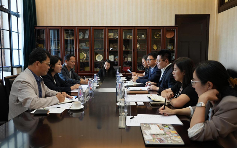 忠南研究院樸炅鐵研究員、鄭鳳熙研究員等陪同來(lái)訪,我院應(yīng)用經(jīng)濟(jì)研究所副所長(zhǎng)湯蘊(yùn)懿研究員、智庫(kù)建設(shè)處處長(zhǎng)于蕾研究員、國(guó)際合作處處長(zhǎng)程福財(cái)研究員等參加會(huì)見(jiàn)。