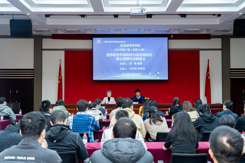 2025年11月18日下午,復(fù)旦大學(xué)馬克思主義研究院院長(zhǎng)、復(fù)旦大學(xué)黨委宣傳部副部長(zhǎng)高帆教授在上海社聯(lián)六樓群言廳為經(jīng)濟(jì)研究所科研人員和研究生講授題為“堅(jiān)持有效市場(chǎng)和有為政府相結(jié)合:理論邏輯與實(shí)踐意義”的專題講座,這是經(jīng)濟(jì)研究所學(xué)習(xí)貫徹黨的二十屆四中全會(huì)精神系列講座,也是“沈志遠(yuǎn)學(xué)術(shù)講壇”的一次重要活動(dòng)。此次講座由經(jīng)濟(jì)研究所所長(zhǎng)沈開(kāi)艷所長(zhǎng)主持。