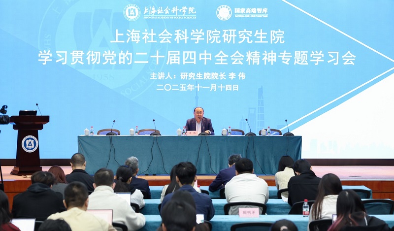 11月14日,研究生院學(xué)習(xí)貫徹黨的二十屆四中全會精神暨2025年上海社會科學(xué)院研究生國情調(diào)研成果交流會在中山西路院區(qū)2號樓5樓多功能廳舉行。上海社會科學(xué)院研究生院院長李偉、黨委書記軒傳樹、黨委副書記侯偉東、副院長邸俊鵬及上海社會科學(xué)院院史辦公室主任劉社建出席本次交流會。會議由研究生院院長李偉主持,百余名碩士生、博士生參加。